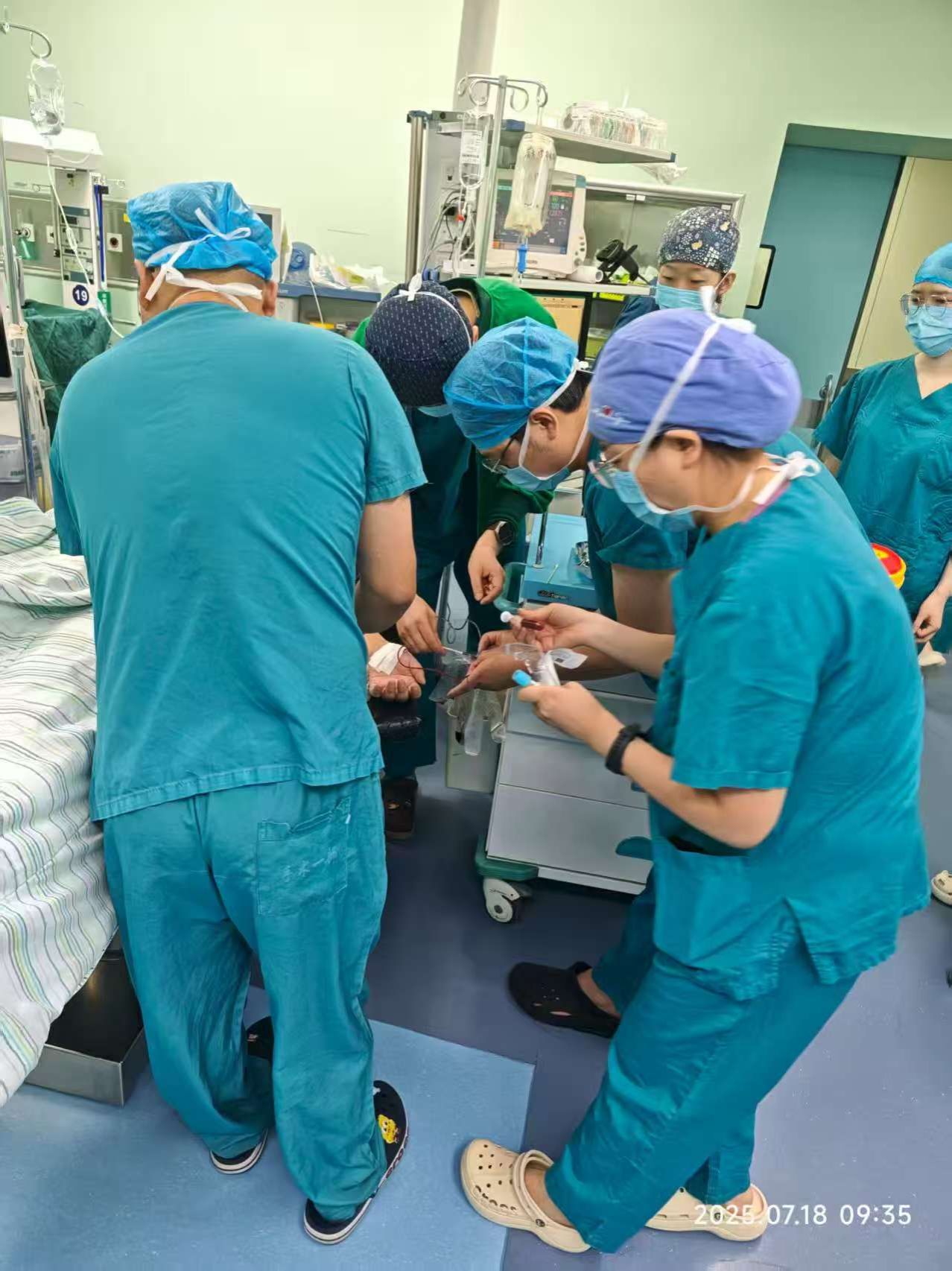 会诊团队结合孕周、出血风险及各项指标,精准制定“多维度防护网”:血液科争分夺秒调配凝血因子七,输血科备足抢救所需血液制品,筑牢“止血防线”;因孕妇幼时曾受严重颜面部烫伤,瘢痕挛缩导致全身麻醉存在困难气道风险,麻醉科团队创新采用单次蛛网膜下腔麻醉方式,既保证麻醉效果,又最大程度降低穿刺出血风险,同时耳鼻喉科提前做好气管切开的应急准备,为麻醉安全再加 “双保险”。