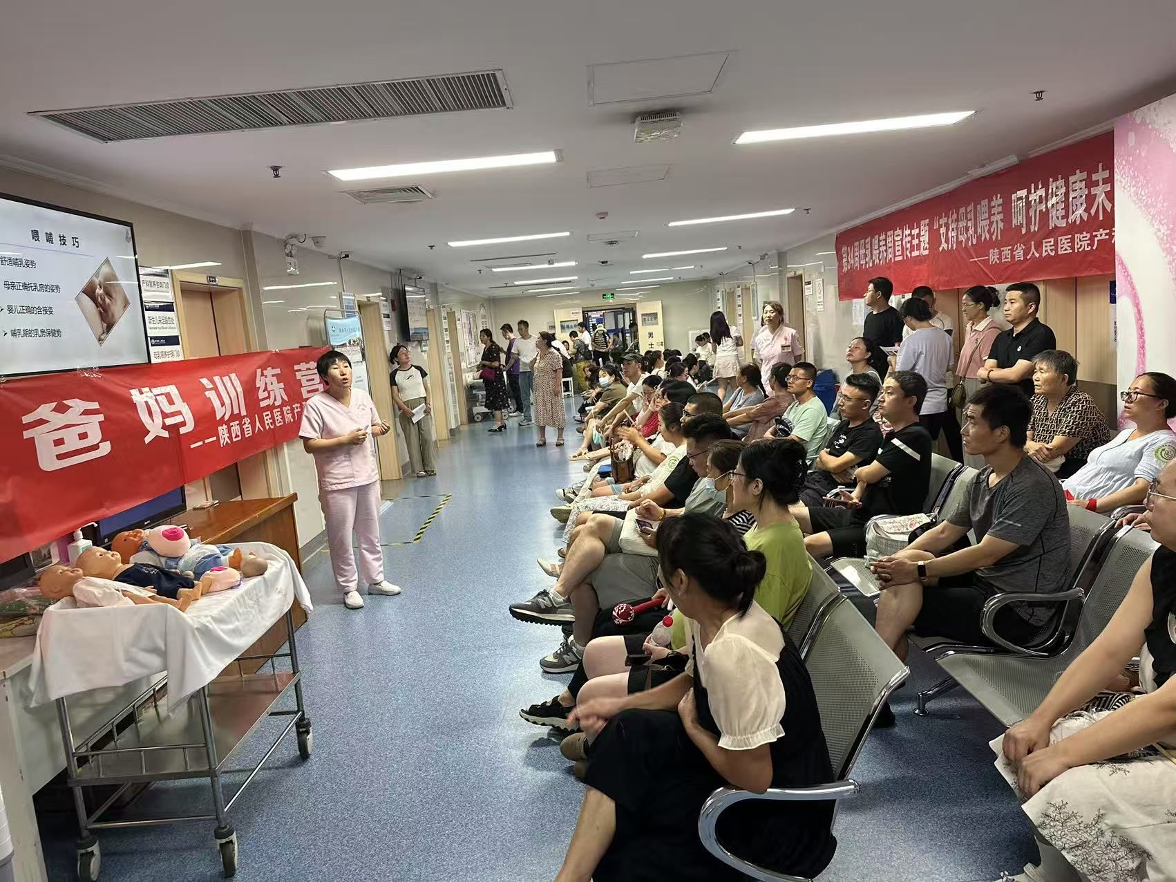 活动期间,宣教团队根据前期的收集100多份母乳喂养相关问卷,针对大众母乳喂养的盲区、误区,举办了题为“母乳喂养之‘你问我答’”专题讲座,并开展了“新手爸妈训练营”活动,由产科护理人员现场指导准爸爸准妈妈们进行新生儿护理及喂养技能模拟,现场活动氛围热烈。活动还同步组织了母乳喂养咨询,为现场前来咨询的孕产妇进行了一对一解答。活动期间,累计服务近百人次。
