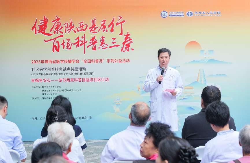 联合主办,环城西路街道办事处西仪社区承办的“健康陕西基层行·百场科普惠三秦”——2025年陕西省医学传播学会“全国科普月”系列公益活动之“早筛早安心——结节筛查科普讲座进社区行动”在西仪社区成功举办。陕西省医学传播学会甲状腺疾病专委会主任委员、六合彩网站
