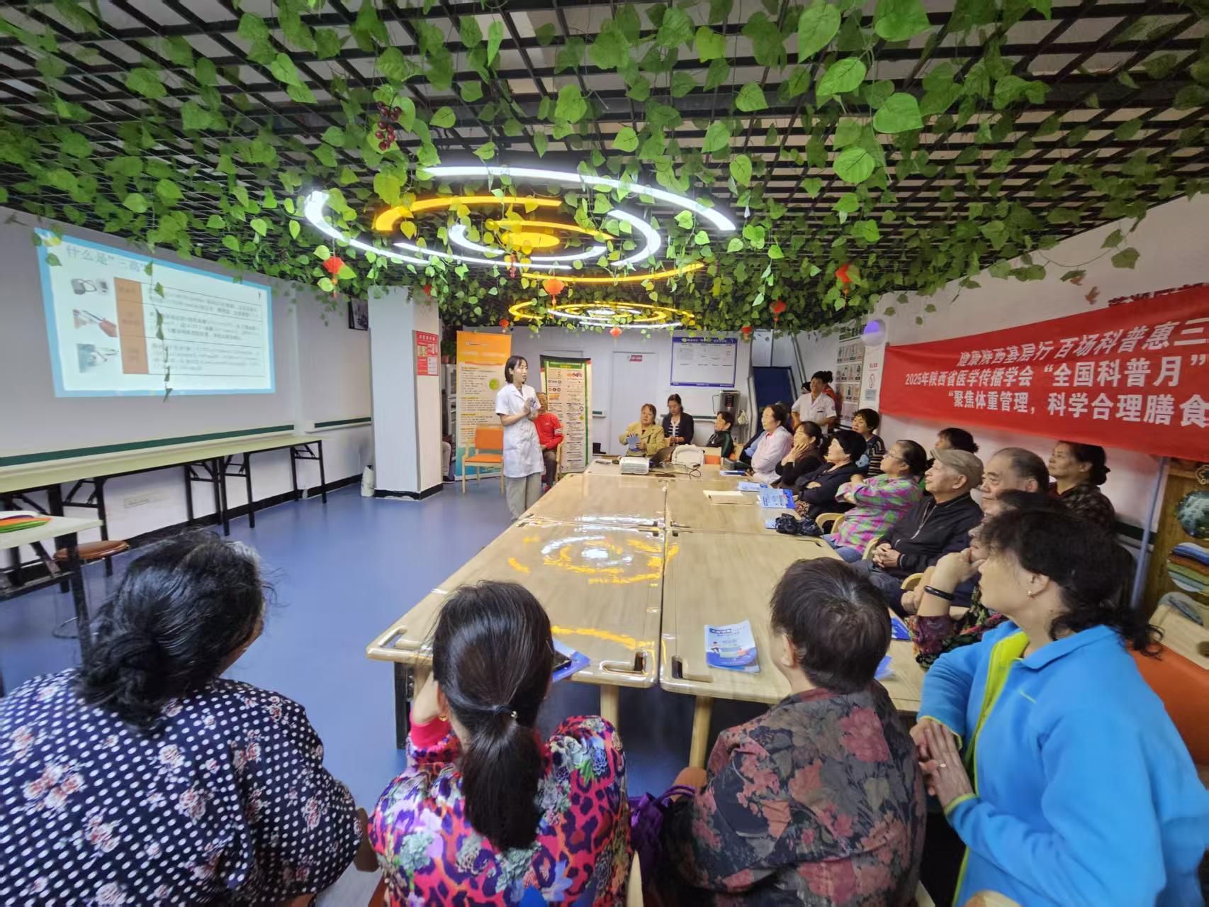 9月18日,全国科普月“健康陕西基层行·百场科普惠三秦”再掀热潮.在陕西省医学传播学会全科专委会支持下,六合彩网站全科医学科团队联合基层实践基地在郭家口社区养老服务站举行“聚焦体重管理,科学合理膳食”科普义诊活动。