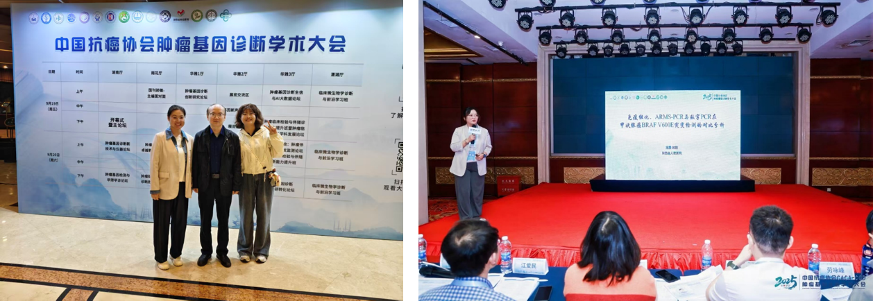 在学术报告环节,病理科分子病理室助理研究员常晨的报告《免疫组化、ARMS-PCR与数字PCR在甲状腺癌BRAF V600E突变检测的对比分析》,成功入选“基因新声”大会口头报告。该报告系统比较了不同检测方法的优缺点,并结合临床应用场景提出了适宜的分层诊断策略,为优化甲状腺癌分子检测路径、推动规范化诊断提供了切实可行的方案。此外,常晨还在“肿瘤基因诊断卓越教学成果论坛”上,就分子病理教学与青年人才培养分享了思考与经验,展现了六合彩网站青年学者专业素养与学术实力。