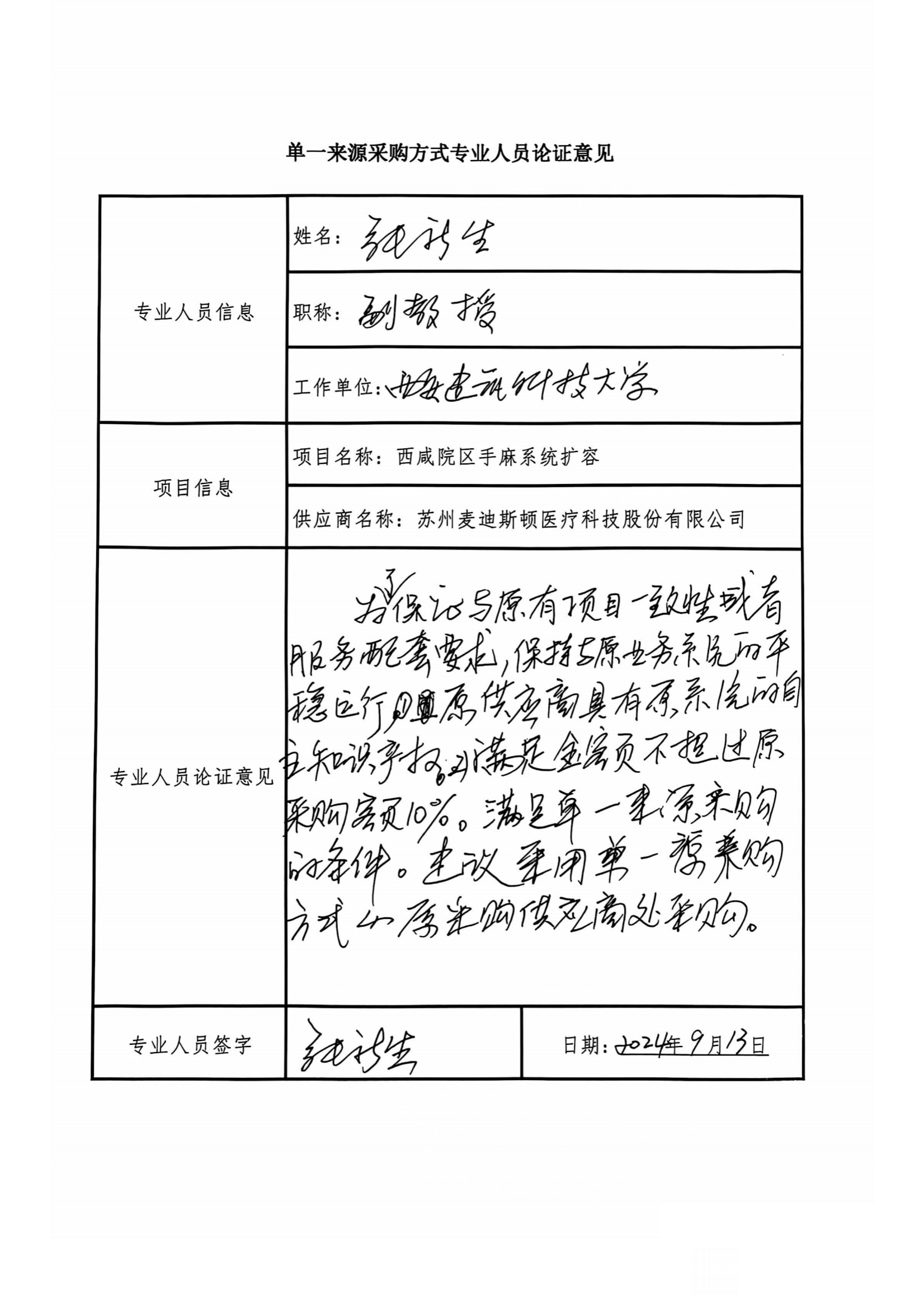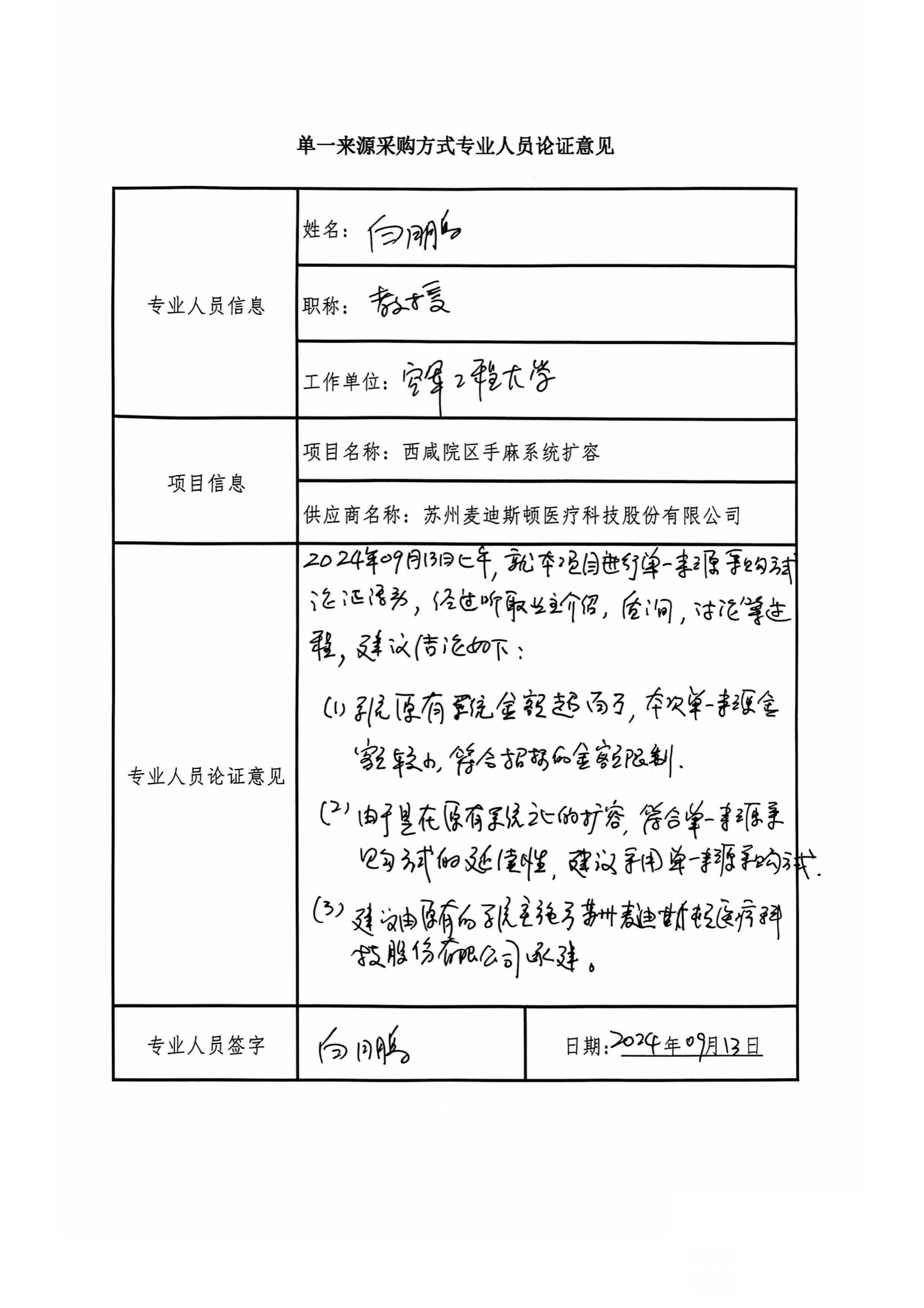 六合彩网站现用手术麻醉临床信息系统由苏州麦迪斯顿医疗科技股份有限公司承建,截止目前已经在六合彩网站手术室稳定运行。根据一院两区信息化建设管理统一、系统统一、数据统一、运维统一的总体指导思想和架构设计,手术麻醉临床信息系统选用原厂商进行覆盖实施至西咸院区,能够复用现有的接口关系、业务流程,确保两院区标准的一致性,无须重新建立手术麻醉系统与临床业务系统的对接,缩短施工周期,减少重复投入,避免资源浪费。