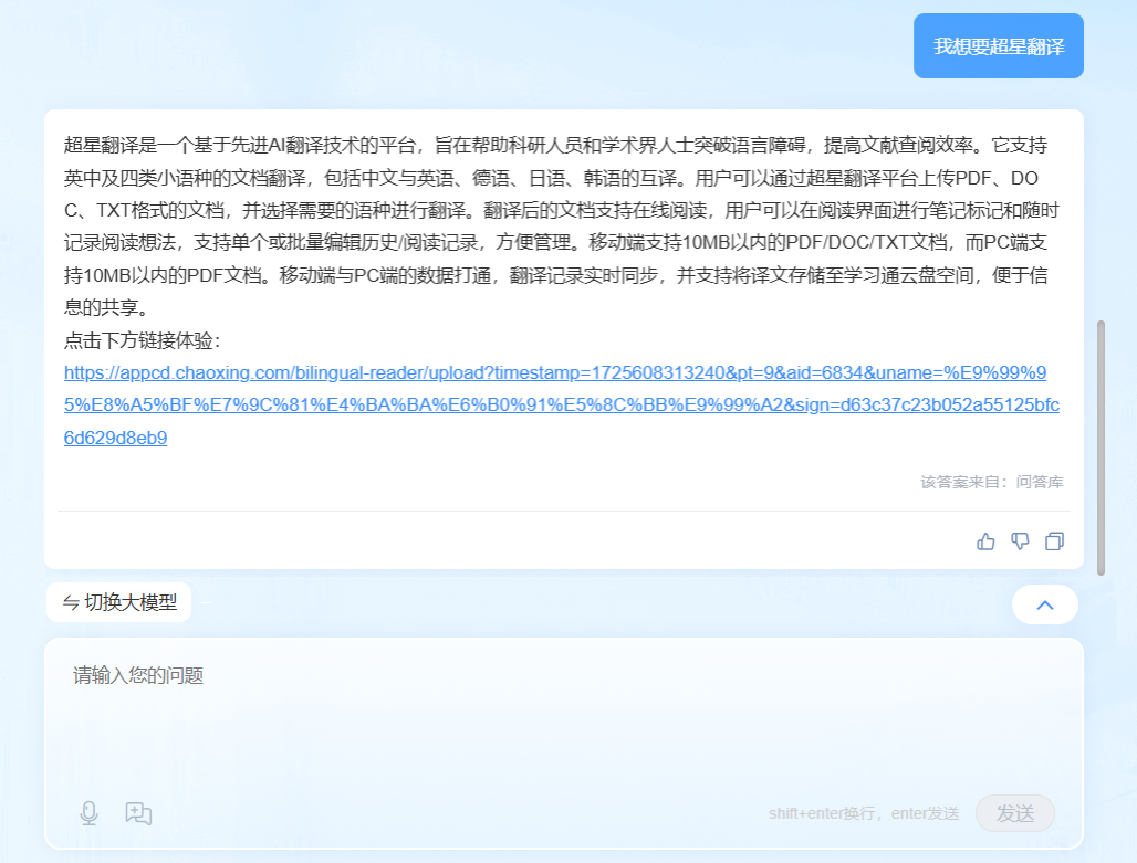 示例:切换大模型提问