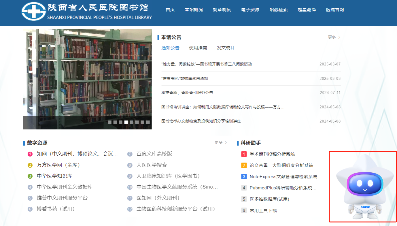 图书馆网站主界面,找到“AI馆员”入口。