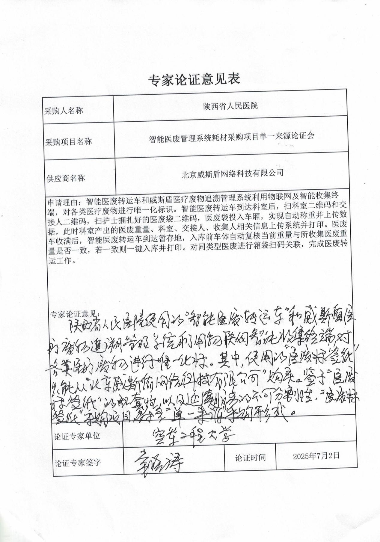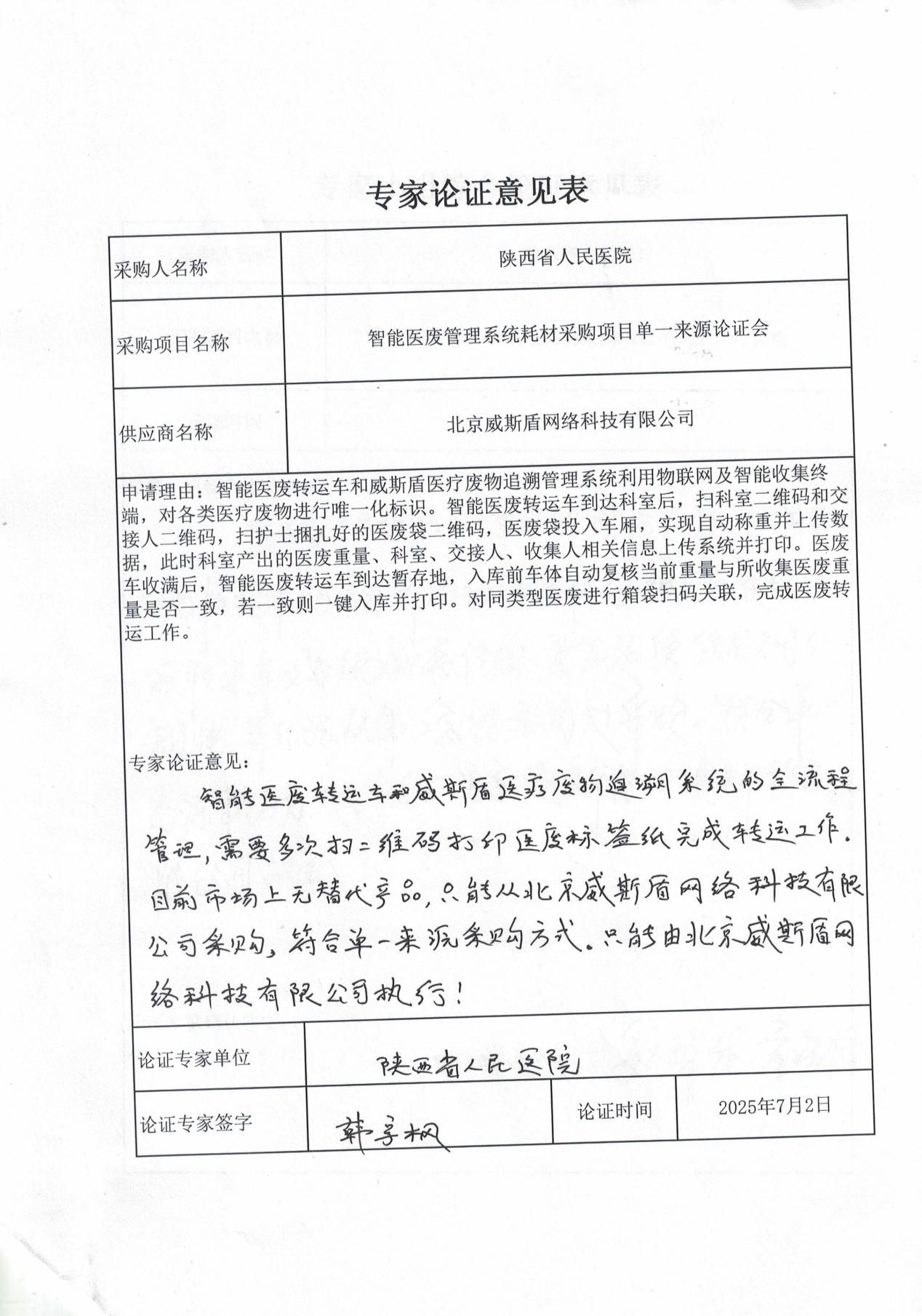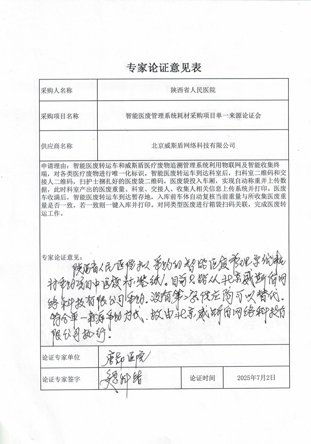 五、单一来源论证意见
