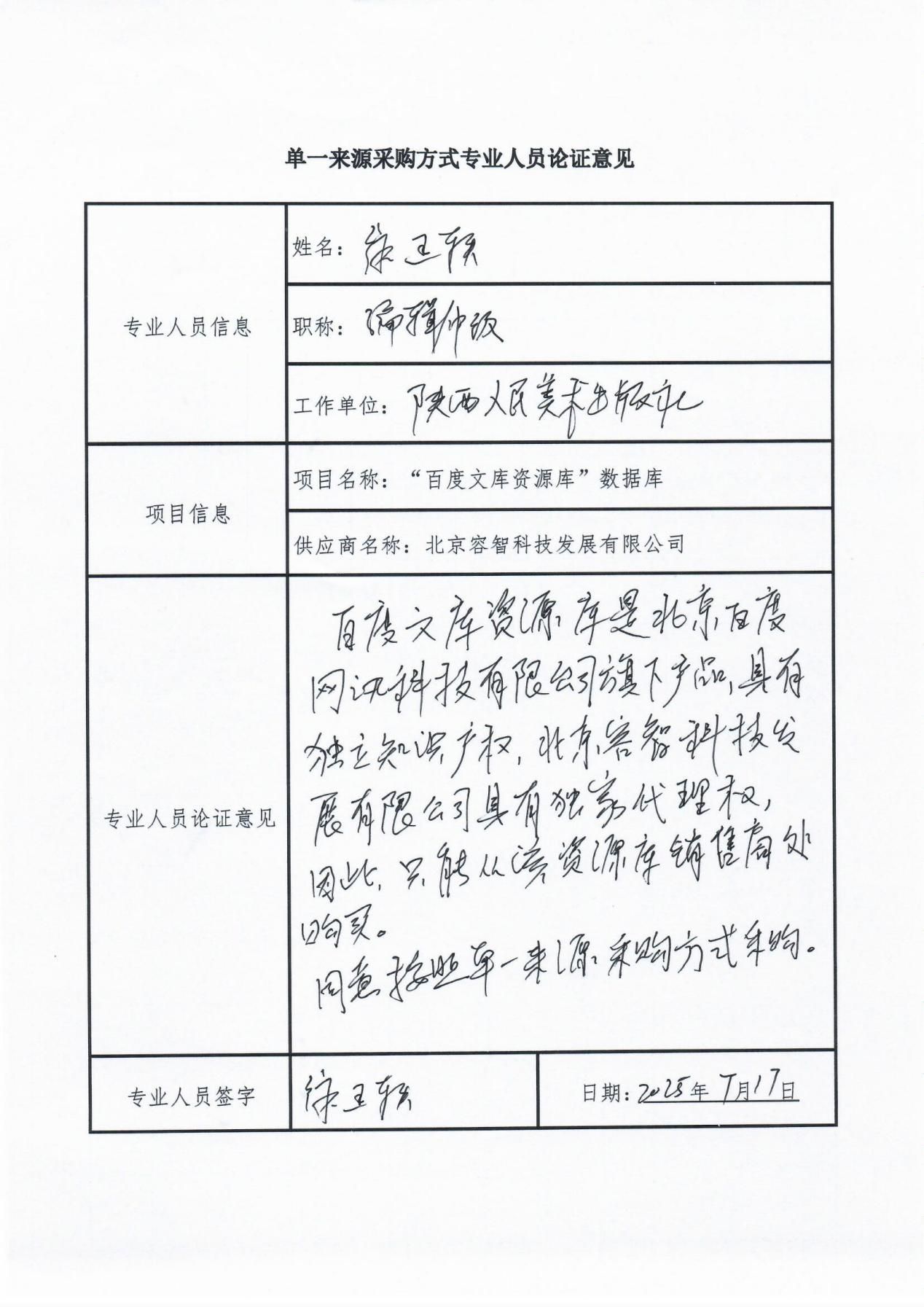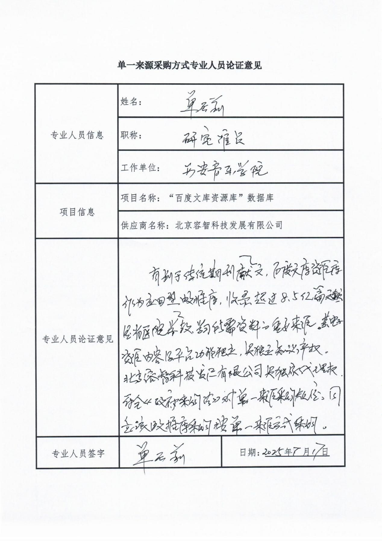 1、拟定供应商名称:北京容智科技发展有限公司