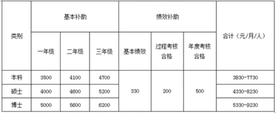 1、基本补助:根据不同学历发放3500-6200元/月/人;资助住培医师(社会人)购买“三险一金”,并向住培医师(社会人员)增加基本补助1500元/月/人,向全科、精神、妇产、麻醉、儿科、急诊、临床病理专业专业住培医师额外补贴500元/月/人。