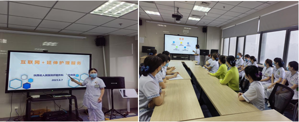 本次活动由上门服务经验丰富的管道护理专家仵晓荣护士长进行分享,从“互联网+护理服务”目前的开展情况、取得的成效、延伸护理努力方向以及在开展过程中存在的问题等方面为大家进行讲解,同时详细介绍了“互联网+护理服务”网上预约流程、服务流程、操作知情同意书、上门时的注意事项等。随后主管护师李仙莉等高年资护士分享上门服务心得体会,强调不但要有精湛的技术、扎实的理论基础,还要有应急处置能力和有效沟通能力,提高服务质量,保障患者安全。