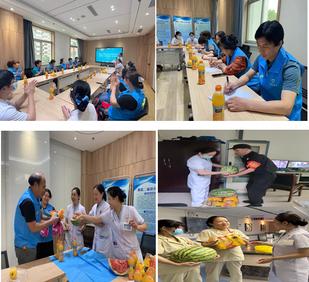 科室的发展离不开保洁、保安及养老护理员的共同努力,同时工会小组为大家带来了防暑降温的食物和饮品,送去科室的一份祝福和清凉。希望他们爱护身体,劳逸结合,履行好职责,更加努力工作。