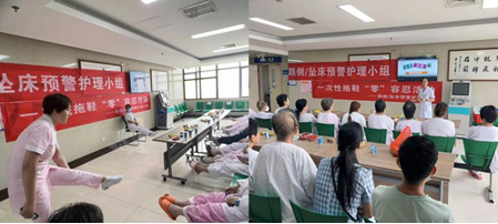 跌倒/坠床预警小组联合VTE小组以患教会的形式讲解了如何预防跌倒/坠床、住院患者杜绝穿着一次性拖鞋的重要性以及患者安全知识科普。