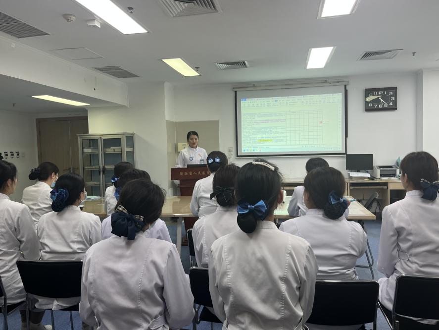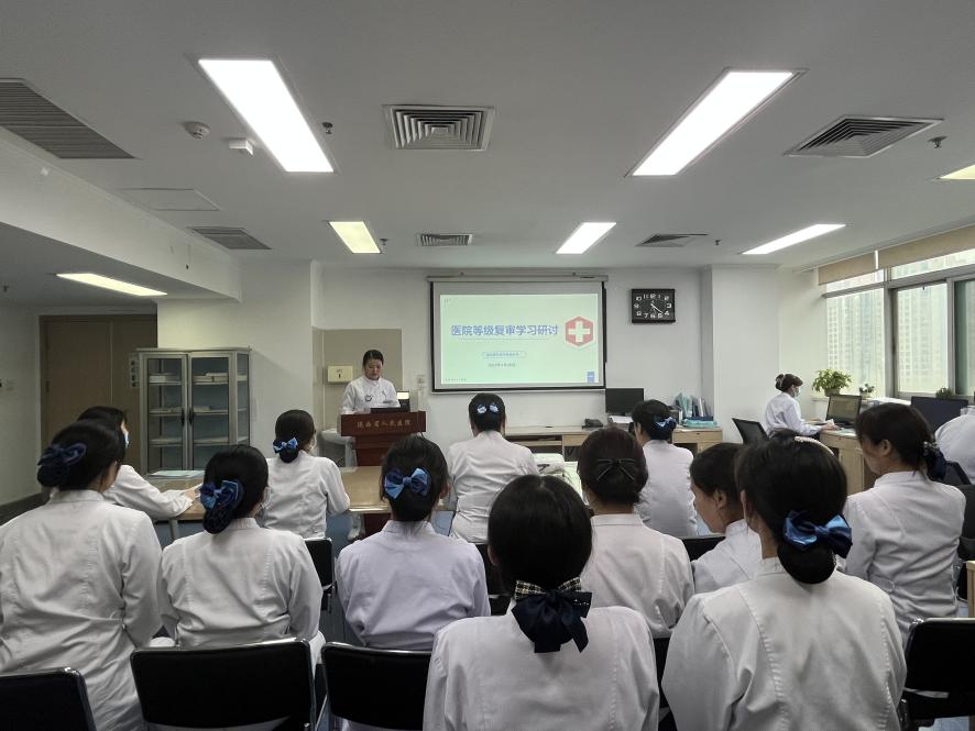 马小妮副护士长对陕西省三级医院评审标准护理检查项目进行深入解读。朱秀梅护士长要求,一是统一思想,提高站位。评审不仅关系到医院的高质量发展、个人发展,更关系到广大患者的生命健康,必须高度重视。二是对标对表,夯实基础。科室要逐条对照评审标准实施细则,认真讨论学习,领悟总结改进。三是明确目标,夯实责任。逐一分解各项任务,责任落实到人,确保每个环节都严格把控,形成闭环管理。要求大家全身心地投入到这项工作中,齐心协力、全力以赴,确保各项工作符合评审要求。