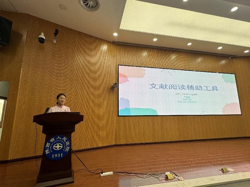 培训环节中,护理部鱼星锋博士就护理研究中显著性检验、相关性检验方法做了详细的阐述。妇科句畅护士展示了文献阅读辅助工具的使用方法。另外,本次会议特邀西安市第九医院门诊办公室主任兼护理部副主任庞咪讲述护士职业道路规划,现场互动频繁、气氛热烈。静脉治疗小组组长张西嫔护士长分析了全院静脉治疗质量横断面调查及结果,并讲解了血管通路正确冲封管的重要性及注意事项。