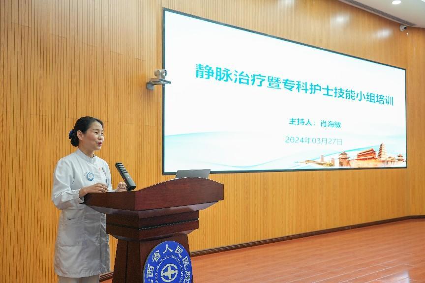 3月27日下午,专科护士技能小组成立仪式暨静脉治疗小组、专科护士技能组第一季度培训圆满完成。本次会议由王倩总护士长和张西嫔护士长精心筹备,肖海敏护士长主持,护理部刘晓梅副主任、静脉治疗小组、专科护士技能组全体成员参加。