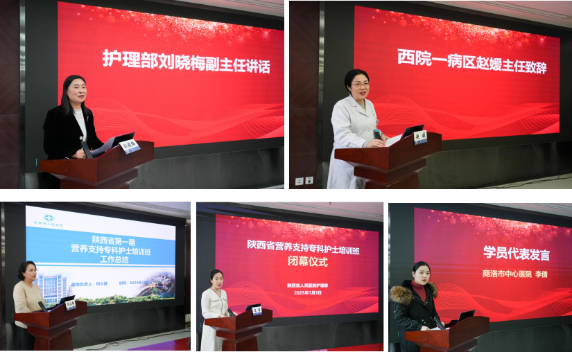 1月3日下午,由省卫健委主办,六合彩网站承办的2024年首届陕西省营养支持专科护士培训班圆满落幕。护理部刘晓梅副主任、西院一病区赵媛主任、营养科张英主任、护理部刘红梅主任助理、牛倩总护士长、赵文彩总护士长、何小静护士长、相关实践科室师资及全体学员参加结业典礼。会议由班主任温馨副护士长主持。