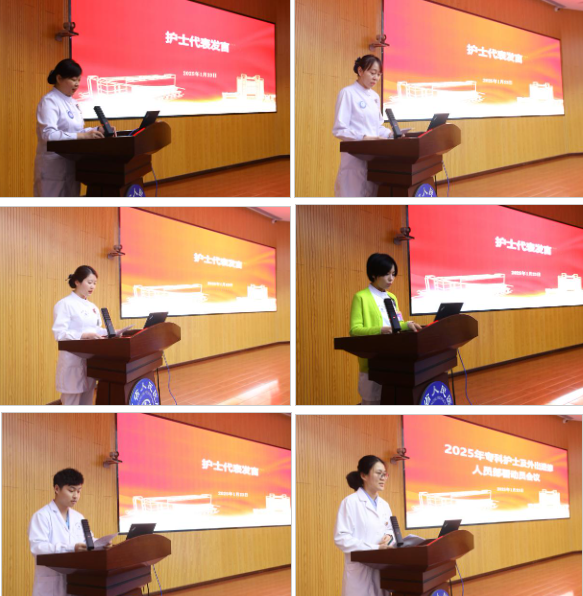 会上,护理部孟亚详细介绍了专科护士及外出进修人员的个人申报及手续办理等相关流程,强调了外出学习的管理规定及学成归来人员的下一步工作计划。内分泌科杨丹、骨科白星、烧伤整形医学美容外科张倩、普外二科王君妍、介入放射诊疗手术室鲁奕帆作为护士代表依次上台发言,表达了对医院及科室提供学习机会的感谢和对前沿新知学习的渴望,表示将珍惜机会,认真学习先进的护理理念和技术,不断提升自己的专业素养和服务能力,为医院的发展贡献自己的力量。