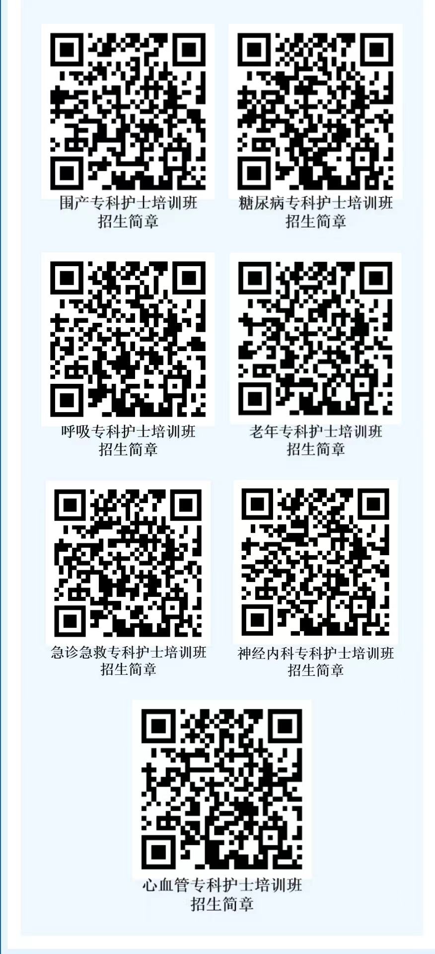 2024年六合彩网站拟举办省级急诊急救、神经内科、心血管、糖尿病、围产、呼吸、老年护理7个专业的专科护士培训班,预计招收300余人,欢迎广大护理同仁扫描文末二维码进行报名。