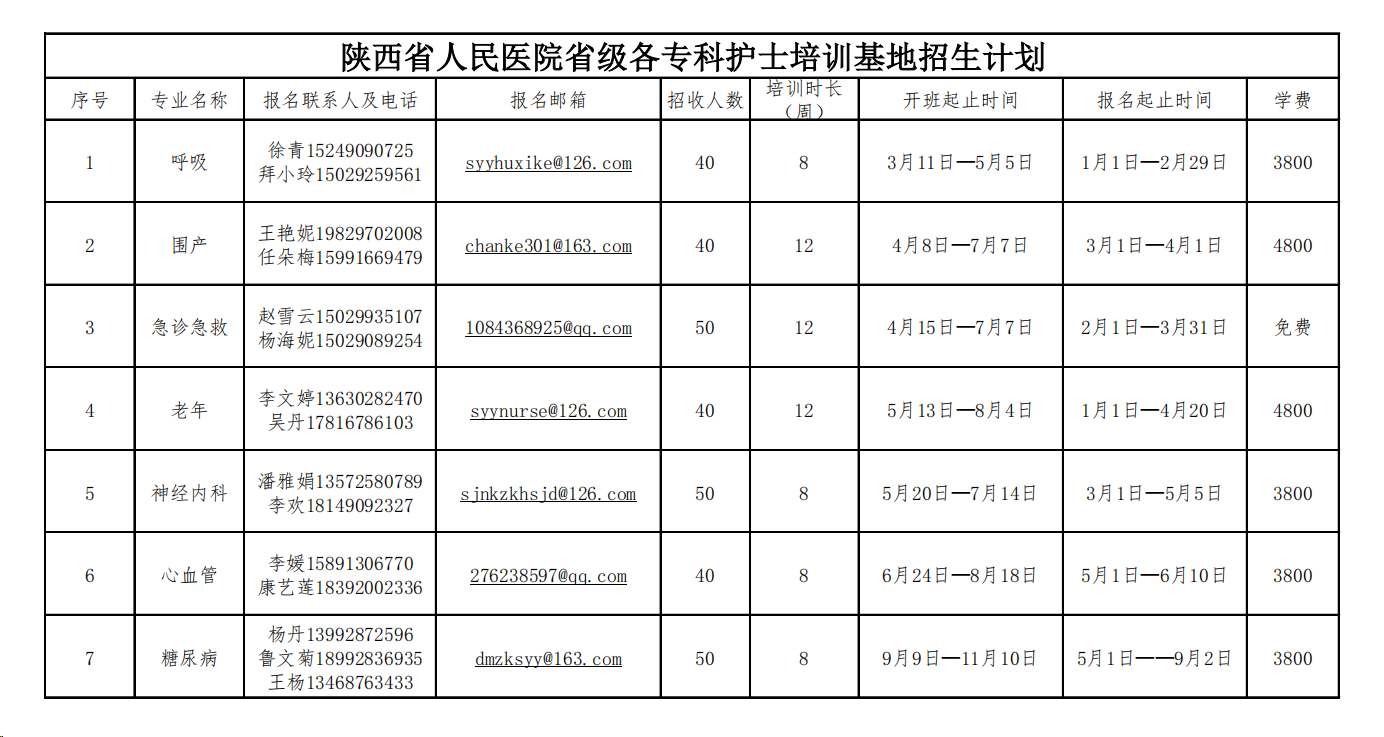 为进一步落实陕西省卫生健康委关于开展2024年陕西省专科护士培训相关要求,更加系统和规范地培养专科护理队伍,提高护理人员专业水平,促进护理事业与学科发展,受陕西省卫生健康委委托,举办2024年陕西省专科护士培训班。现将六合彩网站 专科护士培训基地招生计划公布如下: