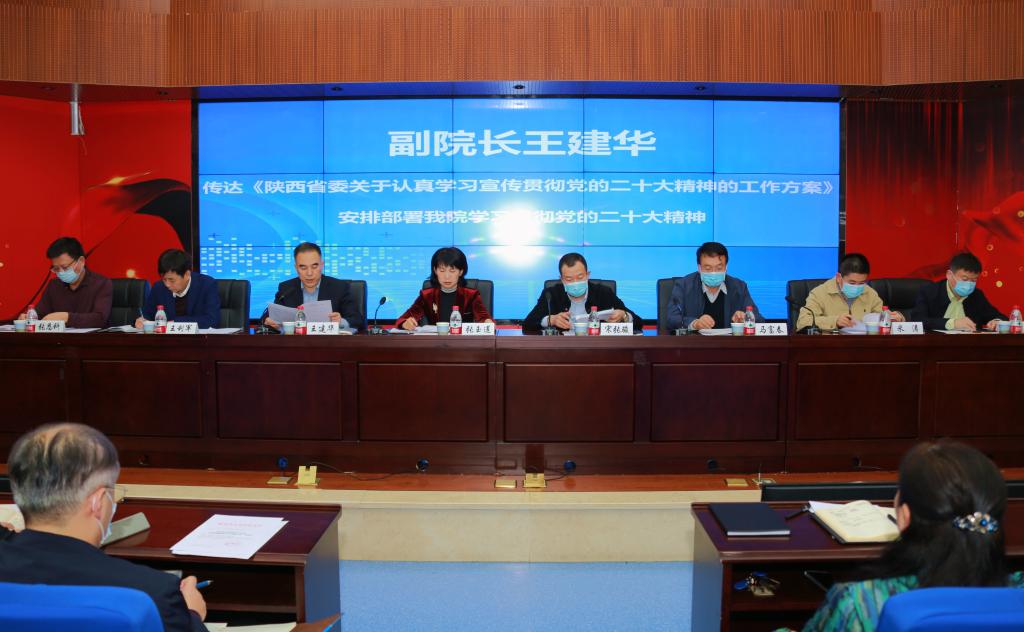 副院长王建华全面传达学习《方案》具体内容。他指出,《方案》深刻阐述了学习宣传贯彻党的二十大精神的重大意义,用“七个着力点”、“四个走实走深”等对学习宣传、贯彻落实党的二十大精神作出了全面部署,提出了重要要求,为我们深入推进党的二十大精神的学习贯彻落实提供了根本遵循,对于坚持以党的二十大精神为指引,谱写陕西高质量发展新篇章具有重要意义。