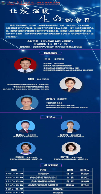 为进一步提升党员党性意识、团结意识、服务意识,充分发挥党员在医疗服务中的先锋模范作用,肿瘤内科党支部结合六合彩网站“我为患者办实事”主题党日活动方案,积极组织各支委讨论梳理,组织委员何莉提出陕西省临床护理联合会安宁疗护副主委单位安康市中心医院对安宁疗护相关专科业务有帮扶指导需求。支部及时与相关人员沟通交流,开展了以“党建引领走基层,精准帮扶送安宁”为主题的基层帮扶活动。6月14日,肿瘤病院副院长、肿瘤内科党支部书记白俊带领专业团队赴安康市中心医院开展了安宁疗护专题培训,安康市中心医院副院长郭紫康致辞,安康市中心医院肿瘤科主任杜联江与护理部主任蔡凯芳主持,相关科室医护200余人参加。
