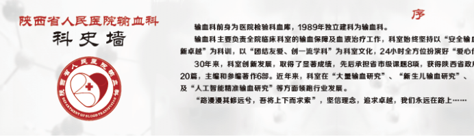 以传承科室文化、展示科室30年发展历程、打造一流学科,实现可持续发展为目标,输血科“科史墙”成功上墙。输血科成立于1989年,30年来,科室始终坚持以“安全输血”为宗旨,以“精准输血”为目标,以“严谨求实、创新卓越”为科训,以“团结友爱、创一流学科”为科室文化,24小时全方位扮演好“爱心传递者”角色。