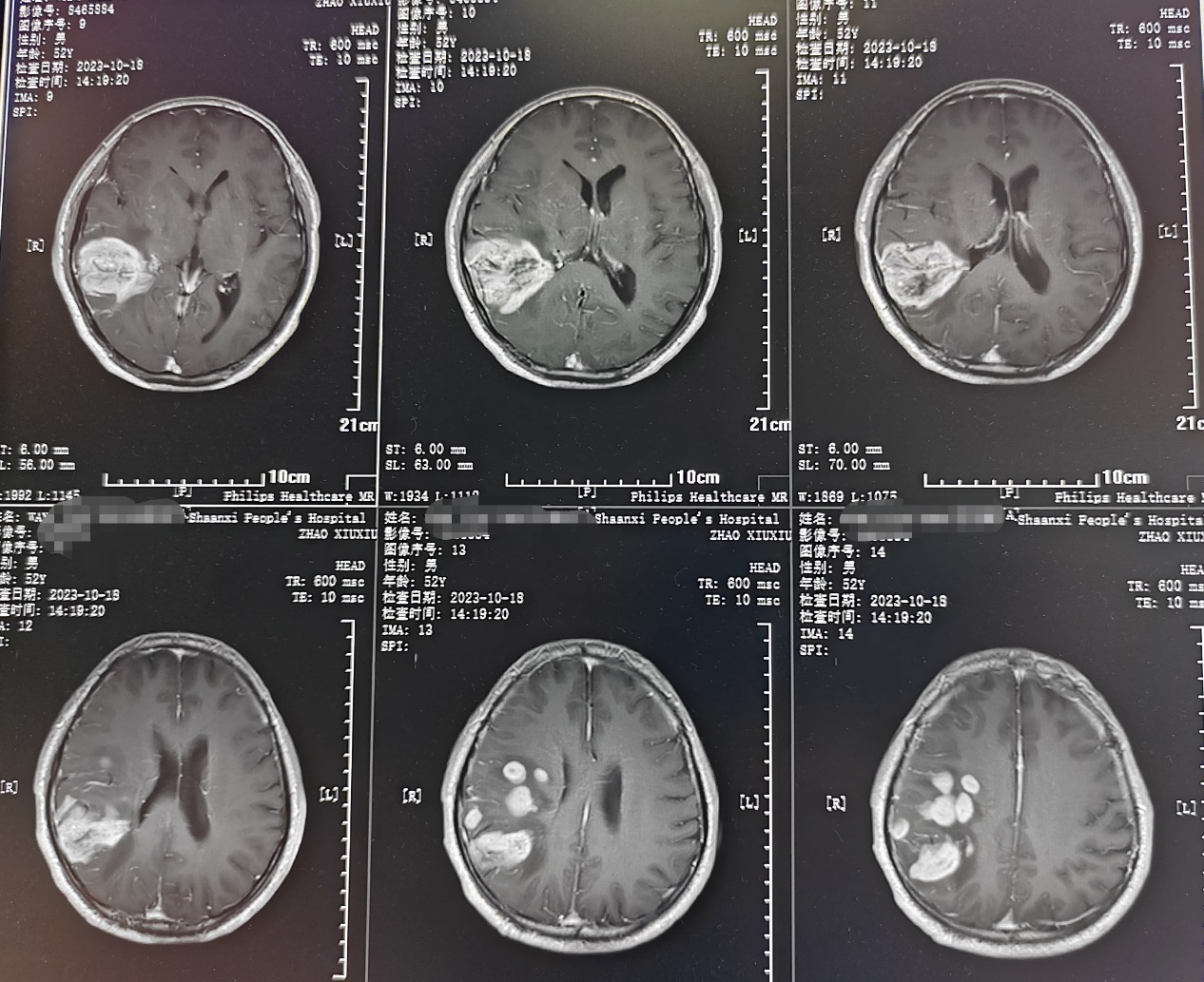 患者为成年男性,因头痛伴间断晕厥1月,在当地医院检查发现右颞顶叶多发占位病变,考虑胶质瘤。因肿瘤功能区关系密切,术后可能出现肢体运动障碍。如何做到在尽量全切肿瘤同时做好神经功能保护,对于神经外科医生来说是一种挑战。术前全科详细讨论病例制定了手术方案,决定在电生理监测下进行手术,近日由缪星宇主任医师、孟发财副主任医师、刘凯飞主治医师成功为患者实施了手术。术中在电生理运动诱发电位的监测下,结合多模态影像技术,显微镜下全切肿瘤,成功利用电生理监测技术保留运动区结构和功能,术后患者恢复顺利,病理结果确定胶质瘤诊断。