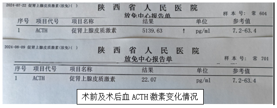 ACTH垂体瘤是垂体腺瘤的一类,该型肿瘤主要临床表现为皮质醇增多症,患者往往向心性肥胖,呈满月脸,水牛背,腹壁及大腿部皮肤指纹,肥胖,高血压及性功能减退等症状。(促皮质激素瘤)80-85%为微腺瘤(直径小于10mm),10-15%为大腺瘤。ACTH垂体瘤治疗首选手术治疗。对微腺瘤首选经蝶窦切除,手术创伤小,并发症较少,大部分患者可以找到ACTH微腺瘤而切除,少部分手术后可能复发,术后需短期补充糖皮质激素,如氢化可的松。对病情轻的可以做垂体放疗,对ACTH大腺瘤患者需做开颅手术治疗。荧光内窥镜利用荧光标记物与原发肿瘤、微小病灶、血流、淋巴转移病灶、淋巴等结合标记,然后以常规内窥镜改造而成的特殊成像设备发射特定波长的光,激发荧光标记物产生荧光信号,将组织区分并以数字化图像的方式显示在屏幕上,为神经外科精细手术提供精确制导。