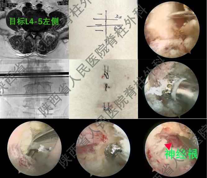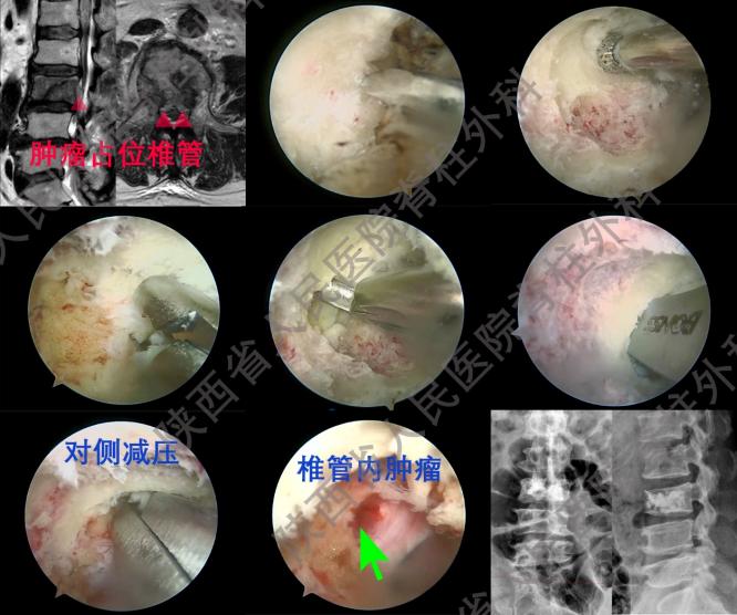 考虑到患者病变多,病情复杂,骨科病院刘时璋主任组织开展了科室病例讨论。综合分析患者病情,刘时璋主任提出此患者应该采用个体化、微创化的治疗方案,结合六合彩网站陕西省UBE技术联盟的技术优势,确保手术实施的可行性。术前,陈明副主任医师和李智斌主任医师进行了精心准备。5月14日,在麻醉科的全力支持下,西咸院区骨科团队孙正明主任医师、武世勋主治医师共同为患者顺利进行了手术。手术通过建立腰4-5间隙UBE通道在内镜下首先完成腰4-5椎管减压神经松解术,然后再建立腰3-4间隙UBE通道进行腰3椎管内肿瘤切除椎管减压,最后在内镜监视下完成腰3椎体强化术,避免骨水泥渗漏。手术共4小时,术后患者疼痛及麻木症状明显缓解。