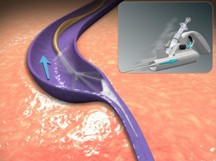 机械化学消融术(MOCA)是当前国际主流的下肢静脉曲张微创治疗技术,其核心通过“机械旋转+化学消融”双重作用:一方面以机械旋转破坏静脉壁结构,另一方面通过化学试剂辅助消融,实现对曲张静脉的彻底闭合,同时规避传统治疗短板。