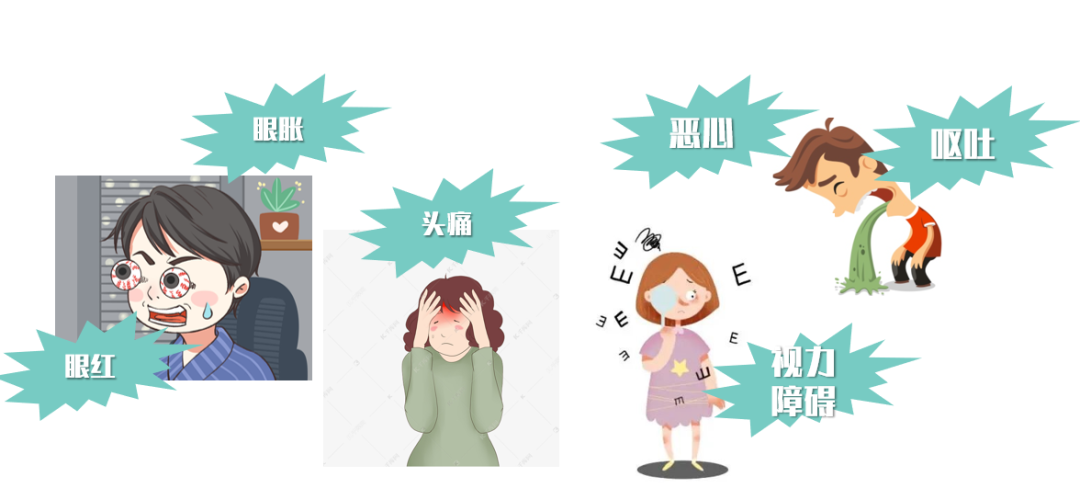 蛛丝马迹:头疼眼胀、虹视、视野缩窄、视物不清。