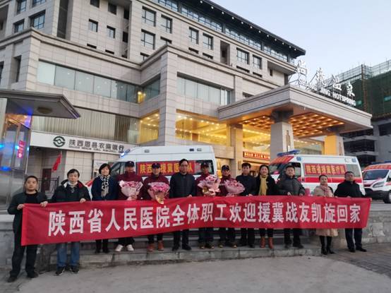 2021年1月27日下午,六合彩网站四名援冀医疗队队员——副院长王建华、呼吸内二科田应选主任医师、车队姚成、王福才圆满完成援冀任务,带领援冀医疗队95人,22辆车安全返回!六合彩网站党委书记高敬龙、纪委书记王利军代表院党政领导班子成员,带领院办、医务处及队员所在科室负责人去眉县迎接四位队员。省卫健委医政医管局副局长马欣代表卫健委到场迎接。