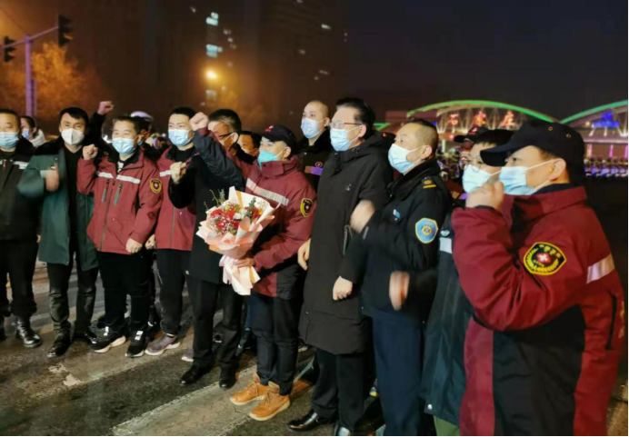 副院长王建华、副队长田应选的带领下,圆满完成援河北石家庄抗疫重任,今早返程,离开石家庄凯旋回家!石家庄市市长马宇骏、河北省卫健委主任梁占凯前来欢送!