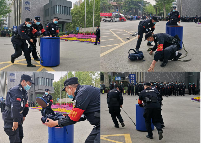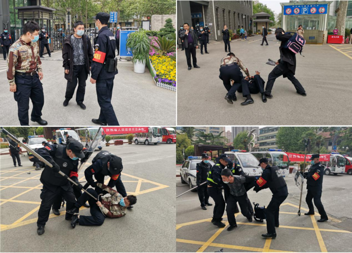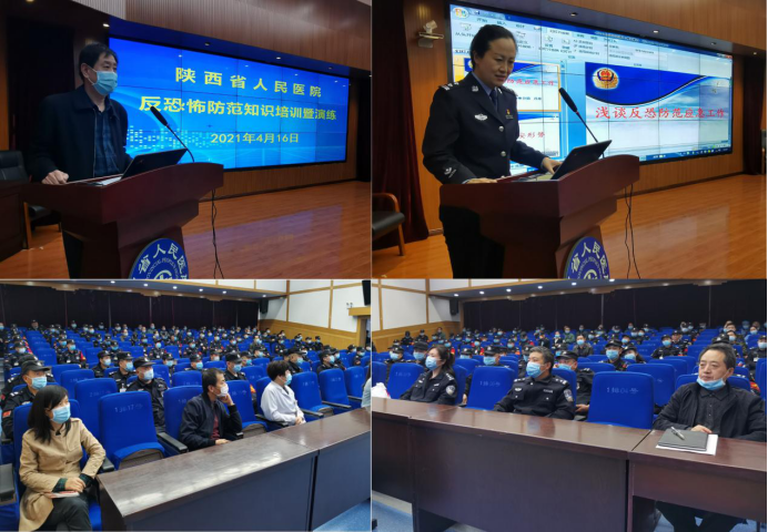 为做好建党100周年和全国十四运安全保卫工作,全面落实国家安全日,4月16日下午,保卫处组织急诊内外科、监管危险化学品的医务处、门急诊医技管理处、药学部、试剂耗材部、医学装备部、科研处、总务处等人员,保安、保洁进行了反恐知识培训及反恐实战演练,特邀市公安碑林分局吕欣警官进行专题培训。碑林分局国保大队民警蔡鹏等3人,红缨路派出所3名特警等100余人参加了培训和演练。