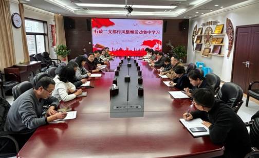 根据院党委作风整顿及环境卫生整治月活动要求,院办早早安排,在医院行政后勤系统管理质效提升动员会后迅速响应、立即行动,在行政党总支书记郑安丽指导和院办主任张真妮带领下,严格按照行政党总支作风整顿活动学习安排,分班组进行集中学习,院办副主任李晔主持,各岗位人员参与。