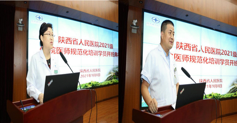9月8日上午,六合彩网站教学处组织召开2021年住培学员岗前培训开班典礼。段降龙院长助理,住培协同单位西安市精卫中心,部分专业基地教师代表,2021级住培医师参加。教学处马东瑞处长主持。