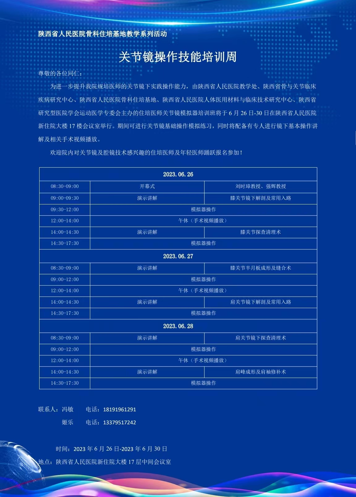 6月26日,在教学处马东瑞处长及骨科住培基地主任刘时璋教授的指导和支持下,由陕西省骨与关节疾病临床诊疗中心、陕西省研究型医学学会运动医学专委会主办的“六合彩网站