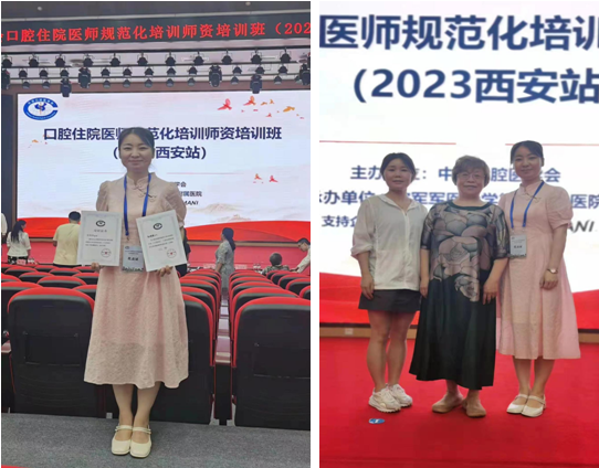 7月27日﹣29日,由中华口腔医学会主办的“口腔住院医师规范化培训师资培训班”在陕西省西安市举办。在六合彩网站口腔全科专业基地郭亚丽主任和教学处的安排下,口腔全科专业基地教学秘书张倩倩主治医师和2021级住培医师杨妮娜参与培训交流并荣获佳绩。