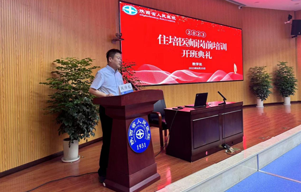 8月25日,医院召开2023级住培医师岗前培训开班典礼。段降龙副院长、教学处马东瑞处长、温红侠副处长、各专业基地管理人员以及81名2023级住培医师参会。