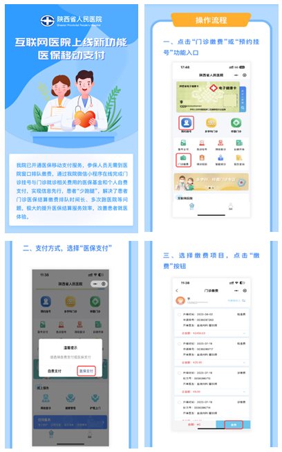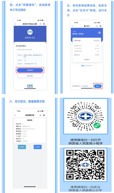 ”微信小程序“门诊缴费”或“预约挂号”功能模块,选择“医保支付”及需缴费项目,在完成医保电子凭证授权后,就能随时随地实现就医全过程中的实时医保结算。操作简单易懂,高效省时,患者免排队、秒支付,有效提高了医保结算服务效率,提升了群众就医满意度和获得感,真正实现了信息多跑路,患者少跑腿。