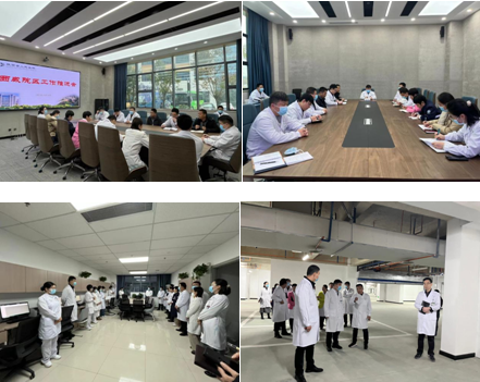 晨交班后,管理部解答了血液内科关于输血、会诊、穿刺,以及食堂、摆渡车、陪护床等多项疑问。随后进行心身医学科、病案库房、总务库房选址;完善重症医学科、呼吸ICU开业相关事宜;查看急诊科ICU及病区,对区域改造进行事前论证;查看高压氧完成情况。