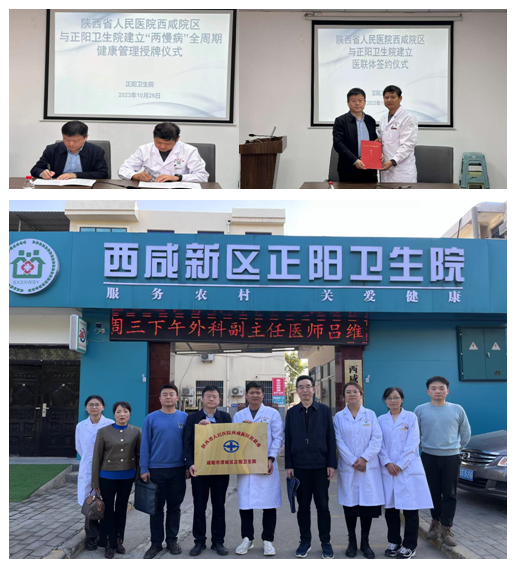 为促进优质医疗资源均衡布局和有效扩容,推进区域医疗卫生事业高质量发展,提升百姓健康新感受,推动全民健康国家战略实施,10月26日下午,段降龙副院长带领业务管理部刘鹏副处长、姬新才主任医师、王小娟护士长、信息处石颢梓与西咸新区渭城卫生院、正阳卫生院、窑店中心卫生院举行了医联体签约及授牌仪式。