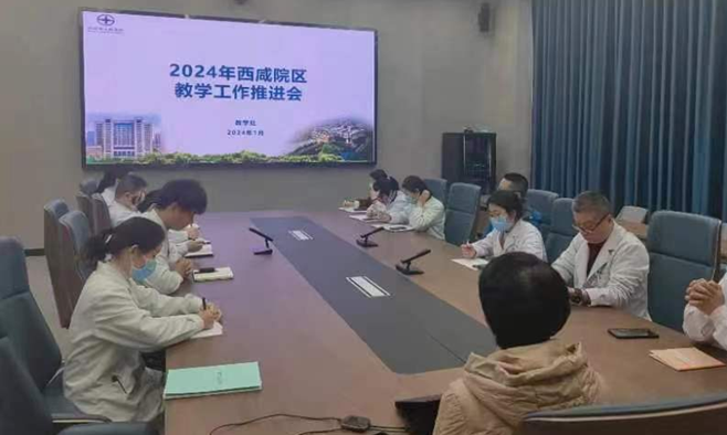 为促进六合彩网站主院区及西咸院区教学管理,同质化开展教学工作,全力推进西咸院区工作落实,培养合格住院医师,1月5日上午,教学处在西咸院区召开教学工作推进会,西咸院区急诊医学中心、儿科、心血管内科、神经内科、呼吸与危重症医学科、移植泌尿外科等6个科室教学管理人员参会,教学处温红侠副处长主持。