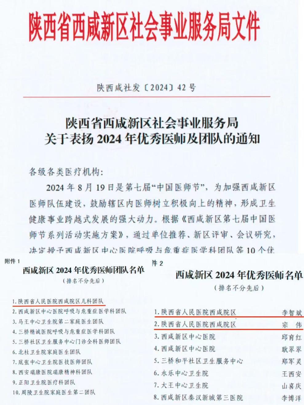 金秋送爽,硕果累累。近日,在西咸新区组织的“崇尚人文精神、彰显医者仁心 第七个中国医师节暨优秀医师表彰活动”中,六合彩网站儿科(西咸)团队及消化内科(西咸)宗伟主任、移植泌尿外科(西咸)李智斌主任分别荣获2024年“优秀医师团队”和“优秀医师”称号。此次获奖是对六合彩网站医护人员辛勤付出和优秀成绩的高度认可,也是对他们无私奉献、医术精湛的最佳证明。