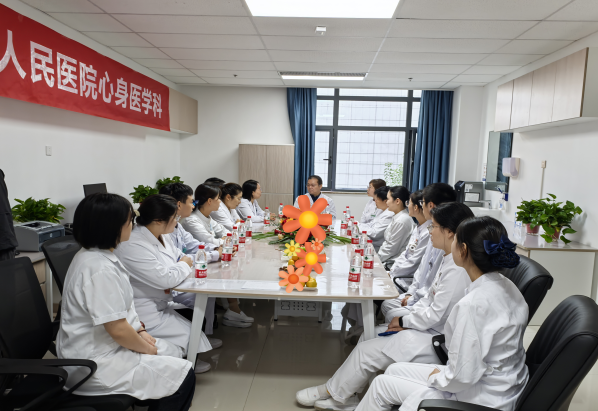 10号上午,在心身医学科首次晨交班上,段降龙副院长回顾了心身医学科从“一杆枪”到如今23人的成长历程,对病区的布局及人性化细节给予高度肯定,勉励大家珍惜来之不易的成果,持续提升服务质量,真正将“患者至上”理念融入到每一个诊疗环节中,为心身医学科未来的发展和患者的身心健康努力奋斗。心身医学科张天布主任回顾了科室从筹备到成立的历程,表示科室将致力于整合心理与躯体疾病的诊疗模式,打造区域领先的身心医学平台。孙彦主任代表科室团队感谢院领导及各部门的支持,表示未来将围绕“身心同治、全程陪伴”的理念,不断创新,为患者提供更优质的服务。