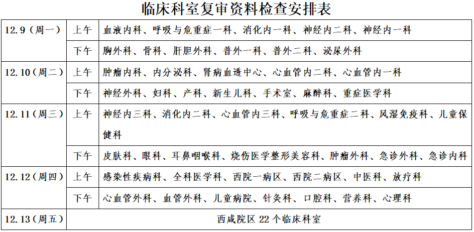 一、检查时间:2024年12月9日-13日(各科室具体检查时间提前一天通知)
