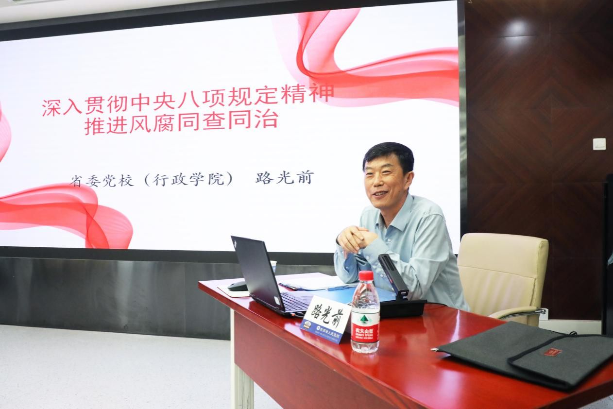 仪式结束后,陕西省委党校副校长路光前以“深入贯彻中央八项规定精神推进风腐同查同治”为题进行专题辅导。路光前副校长围绕中央八项规定及其实施细则精神,从多个方面进行详细解读,并结合典型案例深入剖析“四风”问题。报告主题鲜明、内容丰富,兼具理论深度与实践指导意义,为学员们准确把握、深入贯彻中央八项规定精神提供了有力帮助。