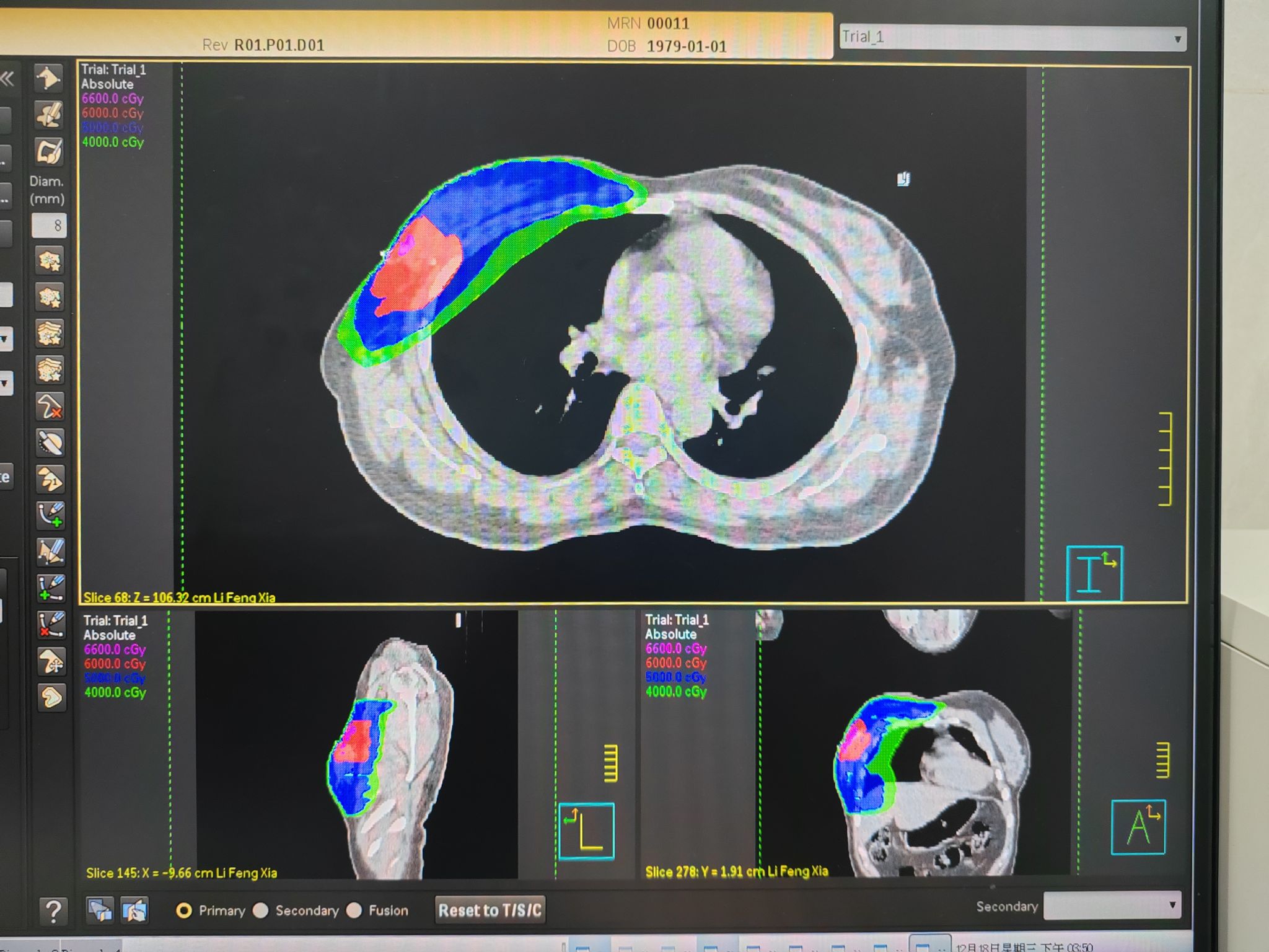 同时,金龙主治医师在帮扶期间指导县医院成功开展四例新技术,分别为首例同体位核磁模拟定位新技术、个体化放疗定位技术、全脑放疗海马保护技术和乳腺癌保乳放疗瘤床同步加量技术。其中,同体位核磁模拟定位新技术成功构建脑胶质瘤CT-MR图像融合肿瘤勾画流程,将磁共振图像与CT定位图像完美无缝融合,显著提升肿瘤放疗的精准度,减少正常组织的损伤和患者的不良反应,为脑胶质瘤的精准放疗提供了可靠的图像支持。个体化放疗定位技术创造性地借助常见的体位固定装置,设计出一种新型低成本的足部肿瘤患者体位固定方式,为一位足背恶性黑素瘤患者进一步实施精确放疗奠定基础。四例新技术的开展让西乡县百姓在家门口享受到了三甲医院的优质医疗资源,对促进区域医疗协同发展具有积极的促进意义。
