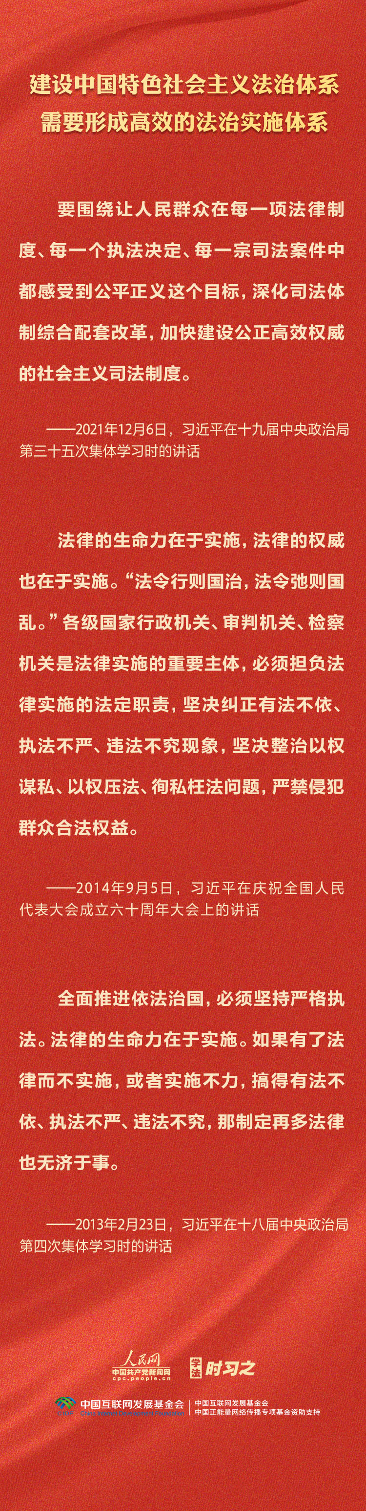 今年是贯彻落实党的二十大精神的开局之年。中共中央政治局决定从今年4月开始,在全党自上而下开展学习贯彻习近平新时代中国特色社会主义思想主题教育。习近平法治思想是习近平新时代中国特色社会主义思想的重要组成部分,人民网·中国共产党新闻网推出学法时习之·学习习近平法治思想系列策划,本篇聚焦“坚持建设中国特色社会主义法治体系”。